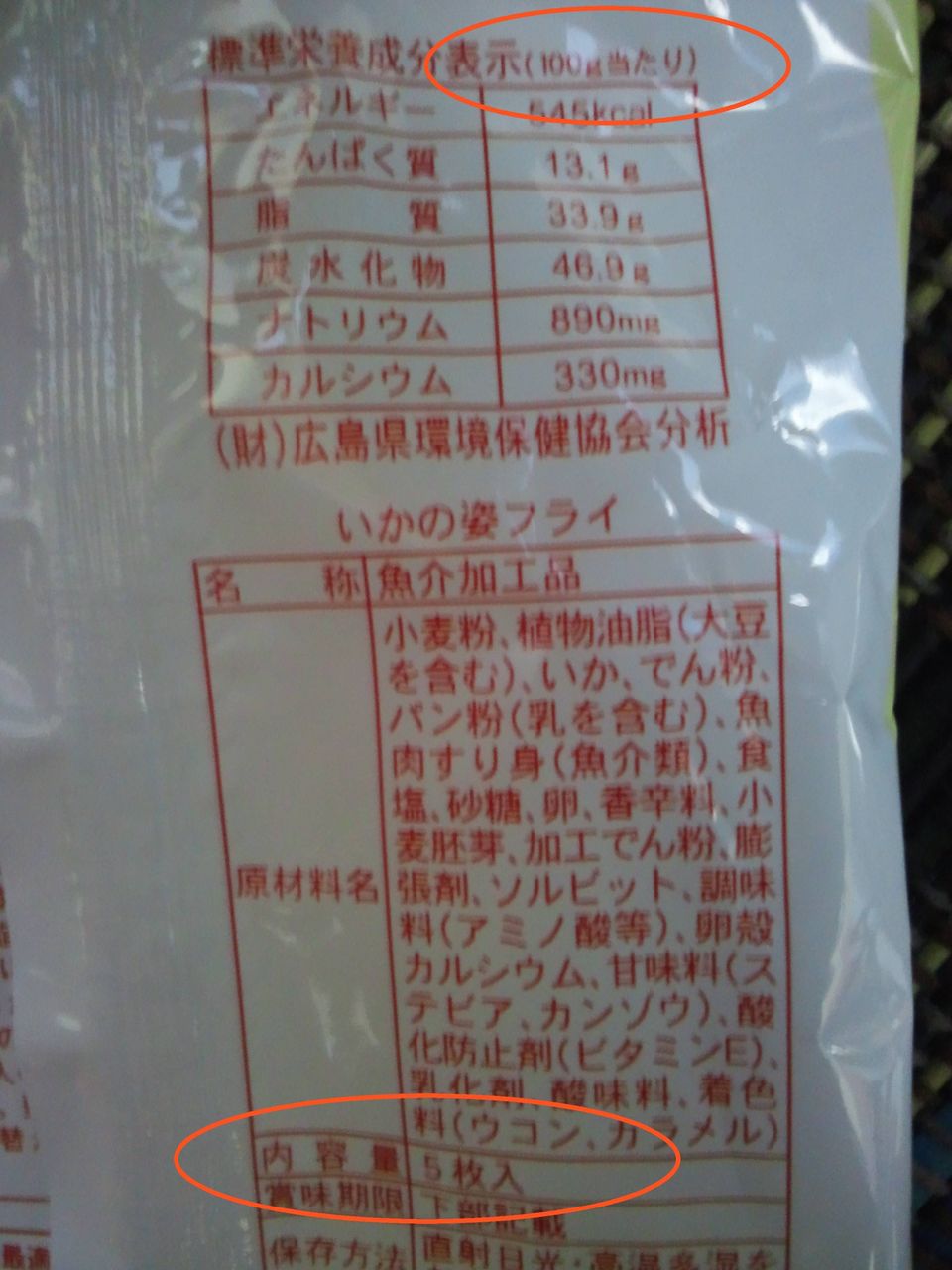 「栄養成分「100g当たり」 内容量「5枚入り」←は?」より