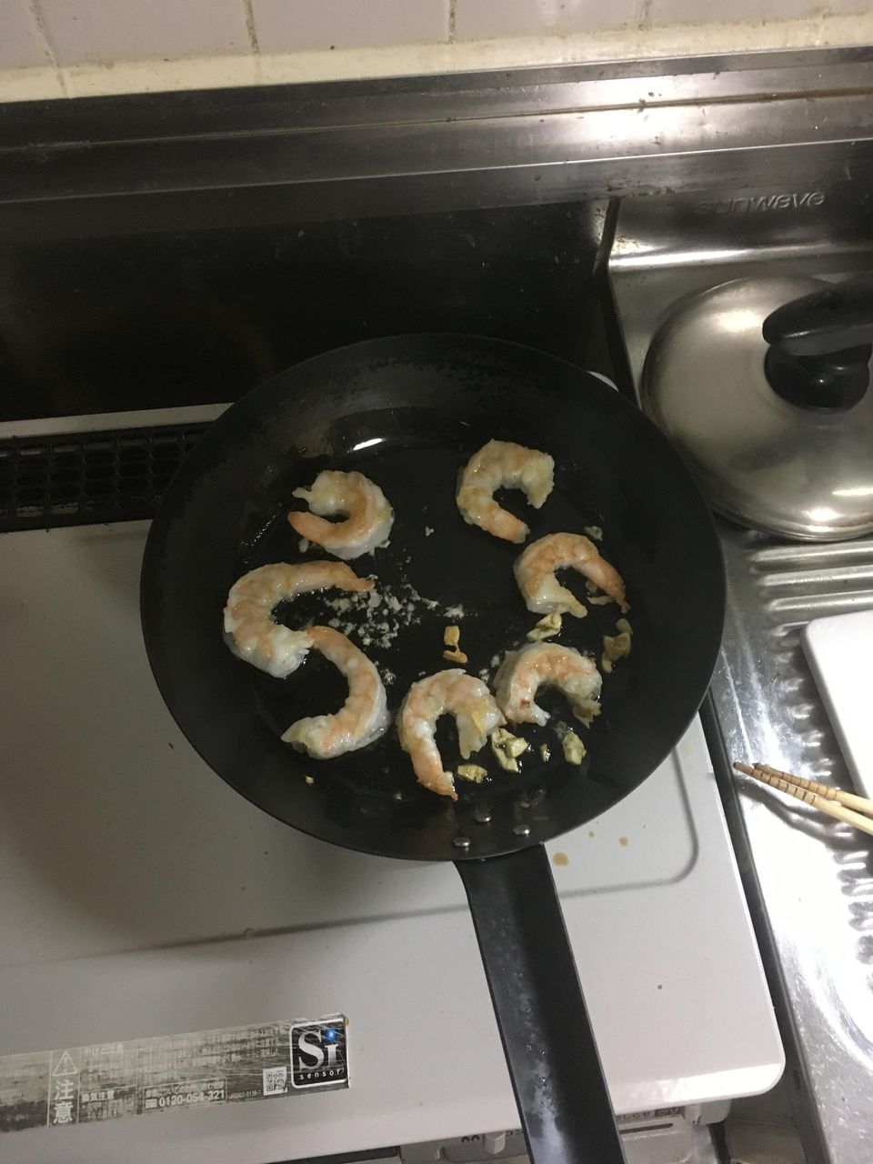 半解凍のエビでやったから、プリプリや!
