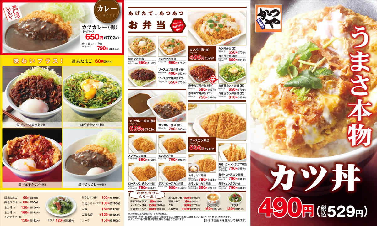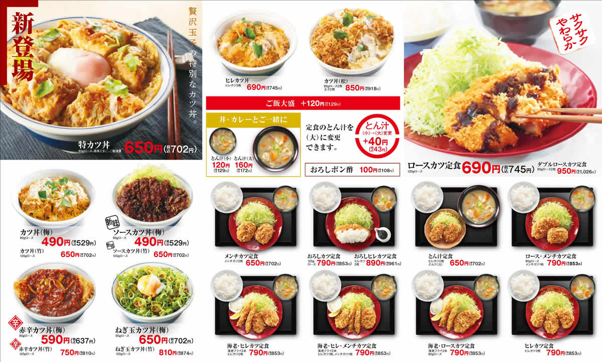 また、新味の赤辛カツ丼、ねぎ玉カツ丼も「かつや」自慢のとんかつを更に美味しくお召し上がり頂けます。