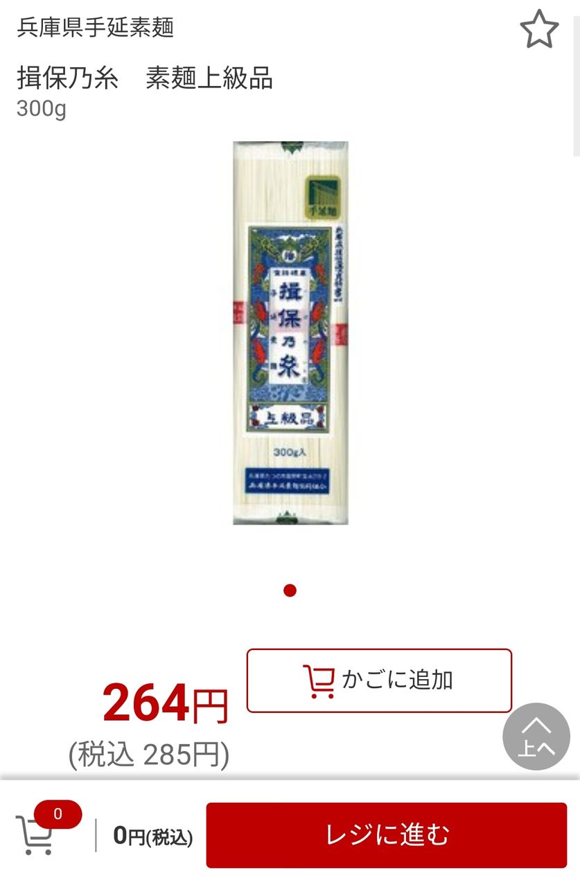 揖保乃糸よりは安いけど普通に300g200円やから業務スーパーの素麺と比べたらコスパ最悪やけど