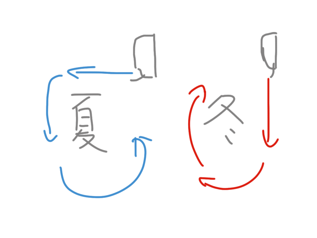 例えば、外出る→暑くなる→エアコン効いた空間に入る→涼しくなる→外出る