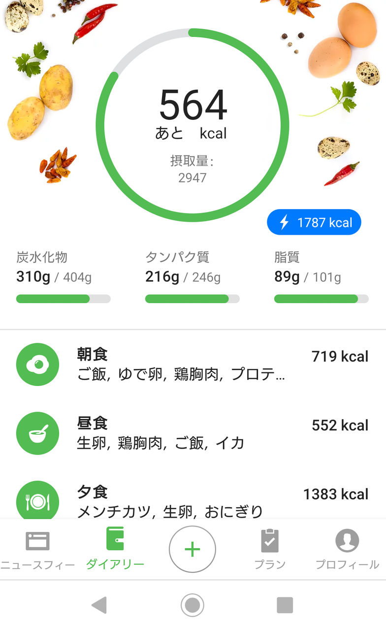 あとアプリ入れて食ったものがどう言うバランスか可視化すべき