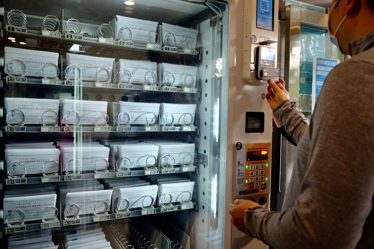 販売機では保険証を差し込むことで購入でき、電子マネーやスマホ決済に対応。