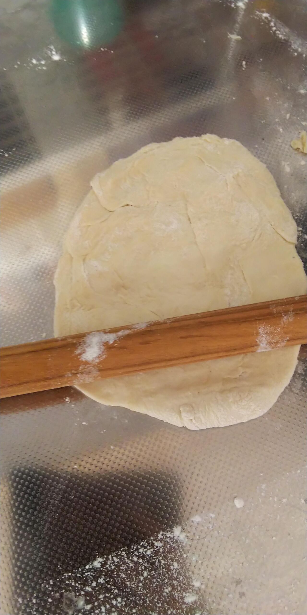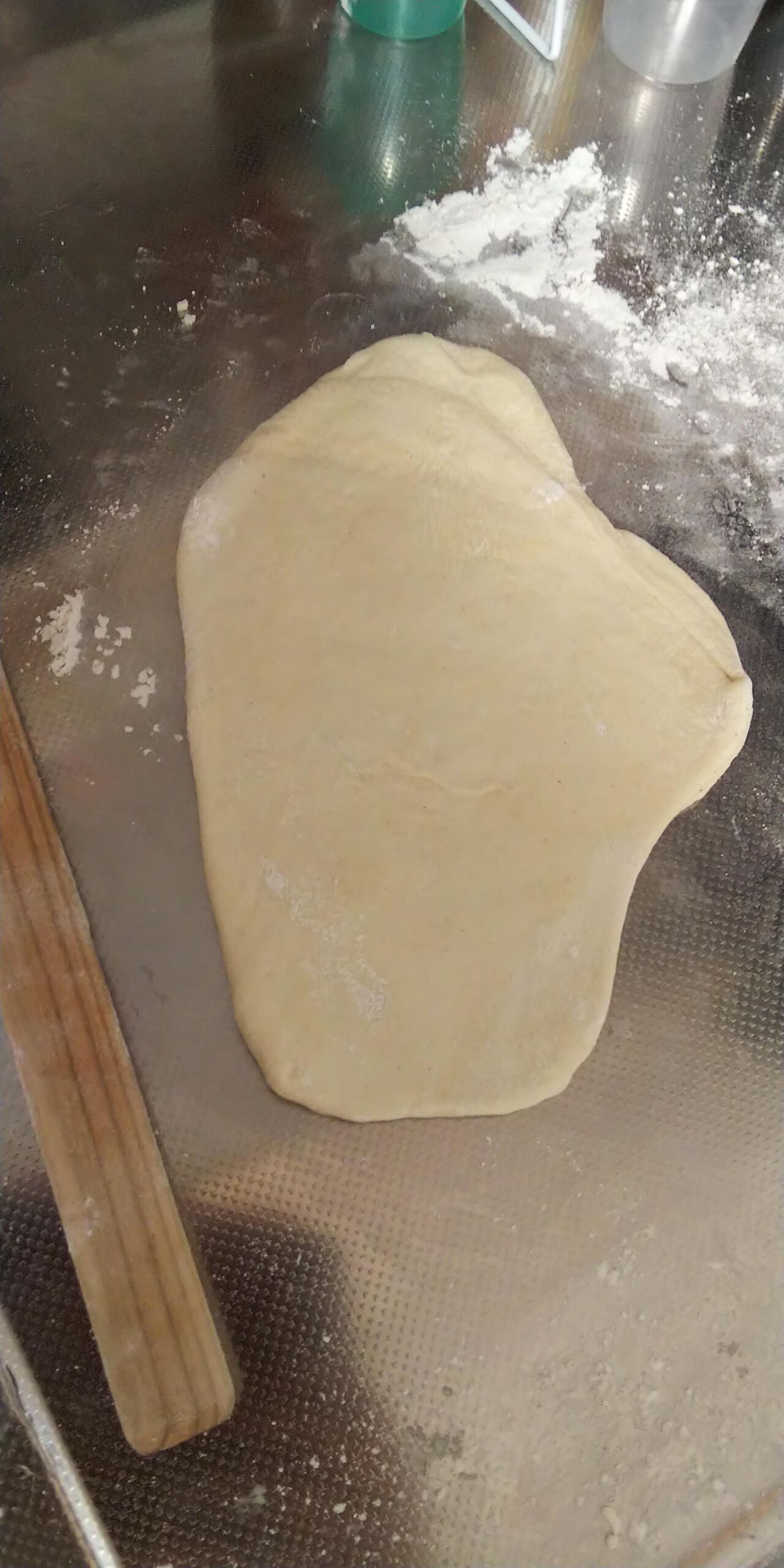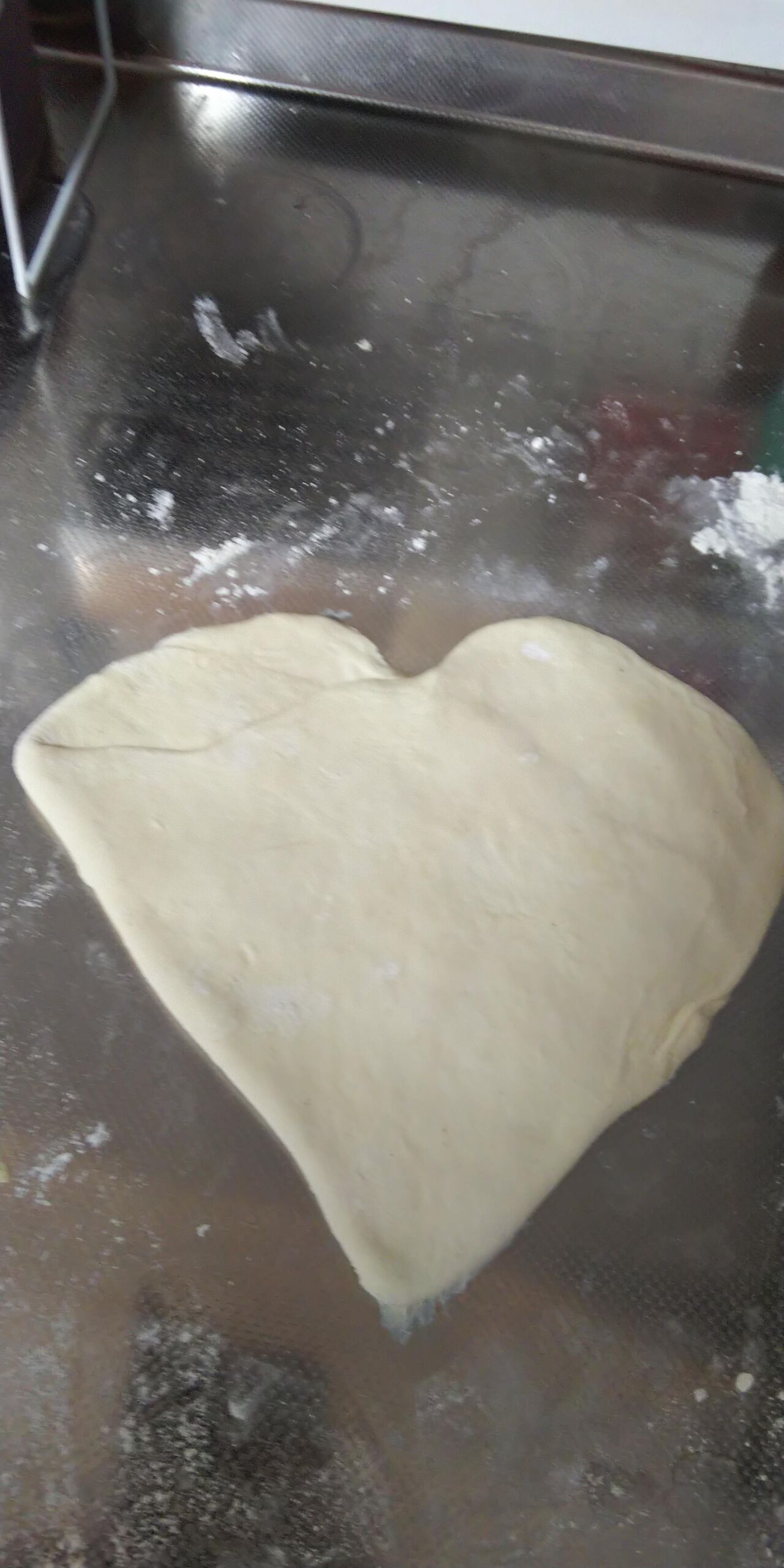 丸く厚めに伸ばしたらあとは両手の手のひらでキャッチボールするように伸ばすんよ