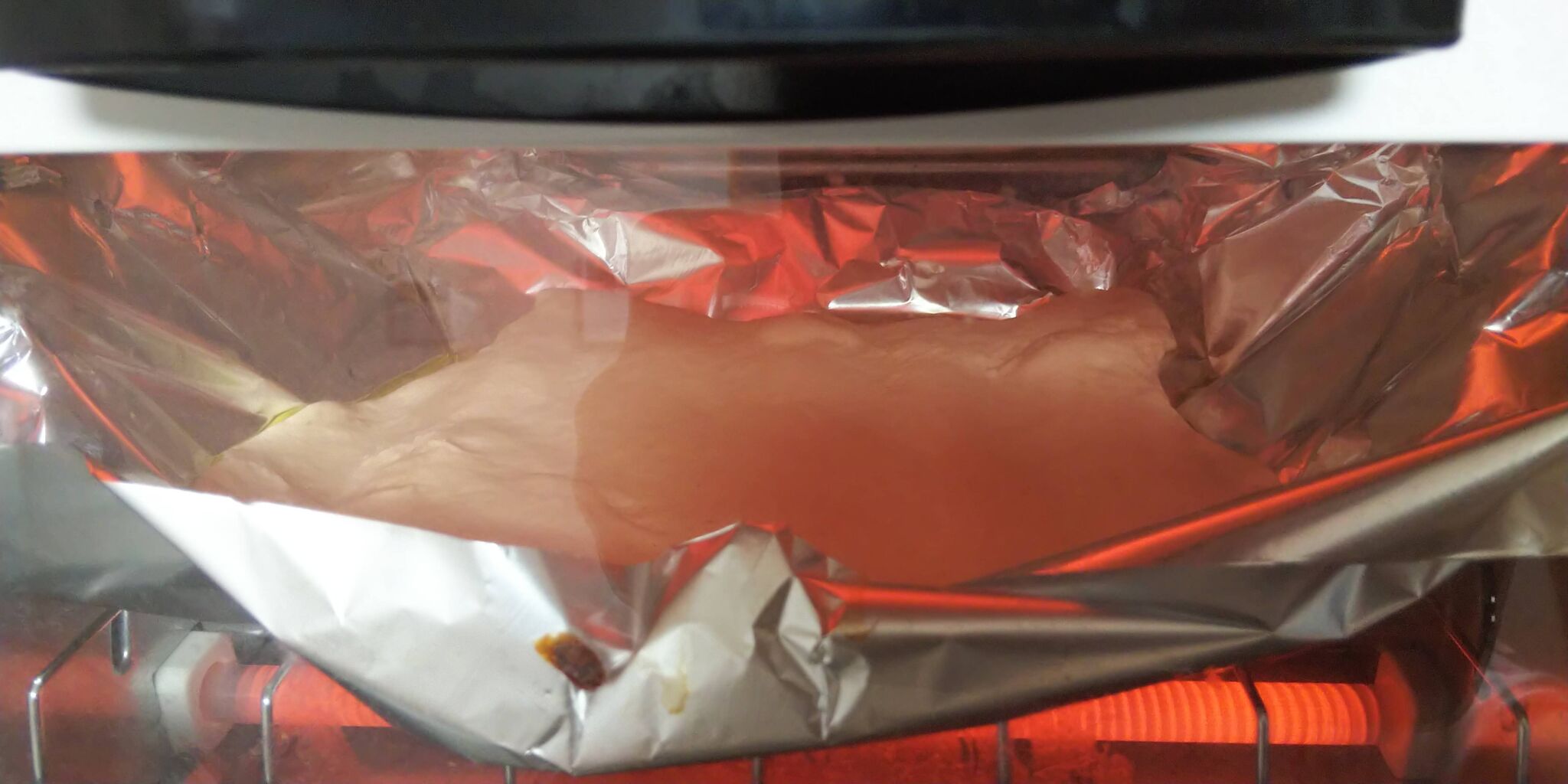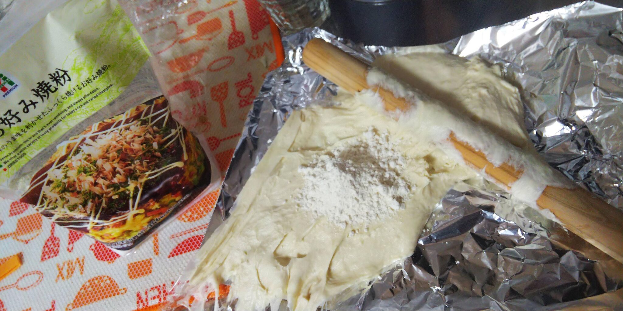 クッキングペーパーがなくてアルミホイルにするなら別の場所で伸ばした後に油塗ったアルミホイルの上に乗せて焼け