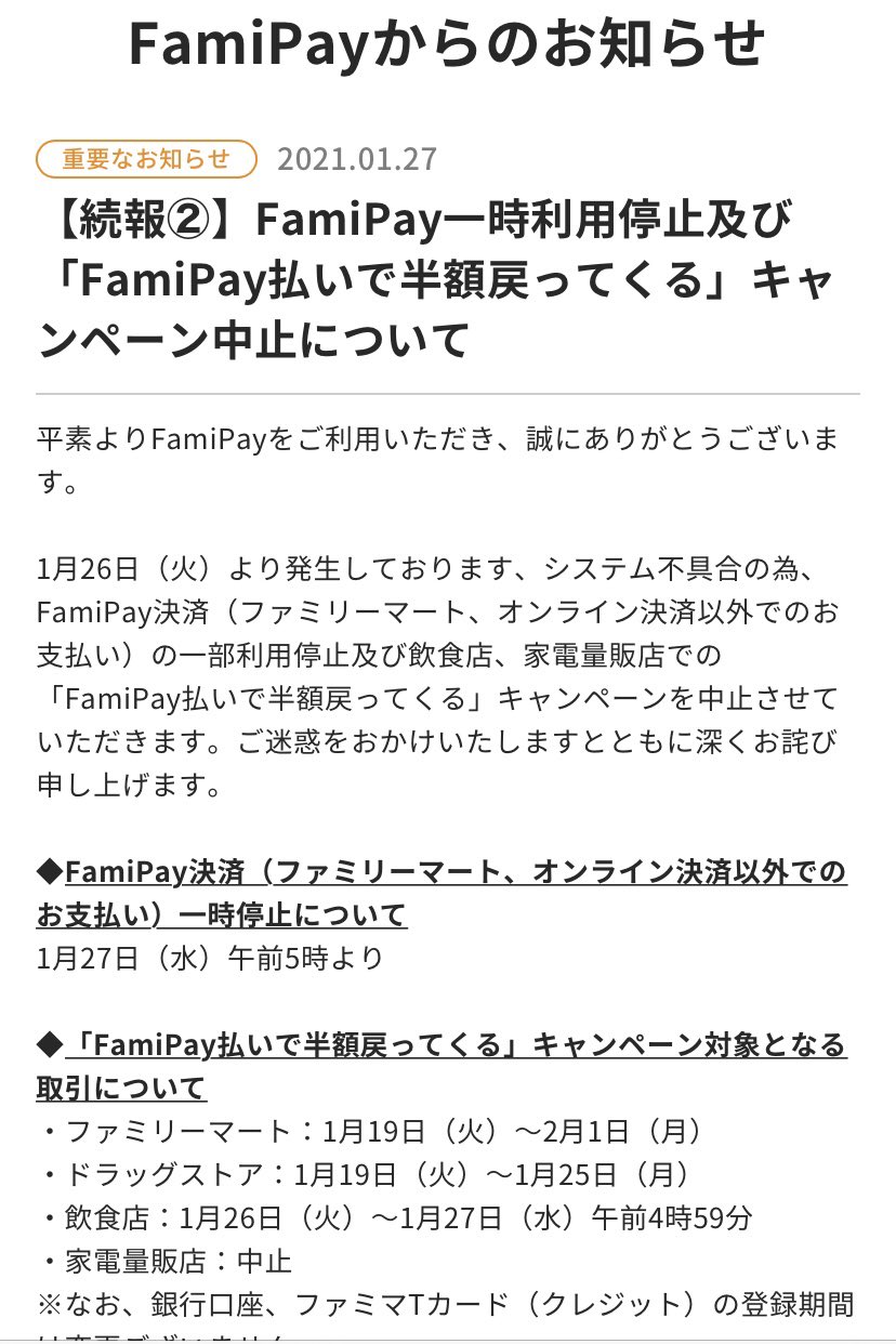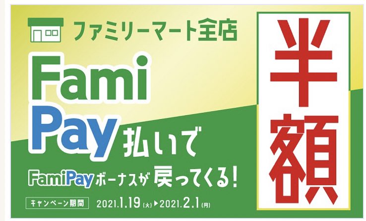これファミマで使うなら半額返ってくるキャンペーン継続中なんか?