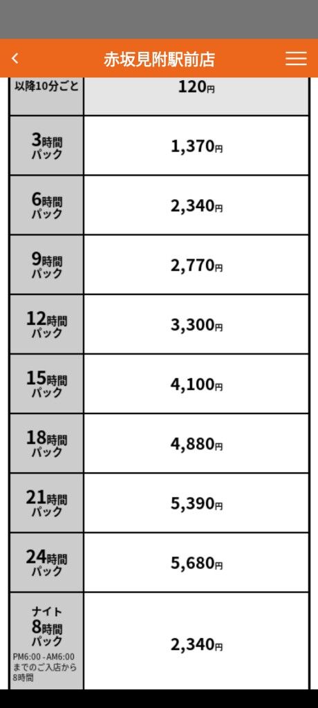 とりあえず秋葉原店は深夜12時間パック休日価格で鍵無し3820円鍵有り4870円やったわ