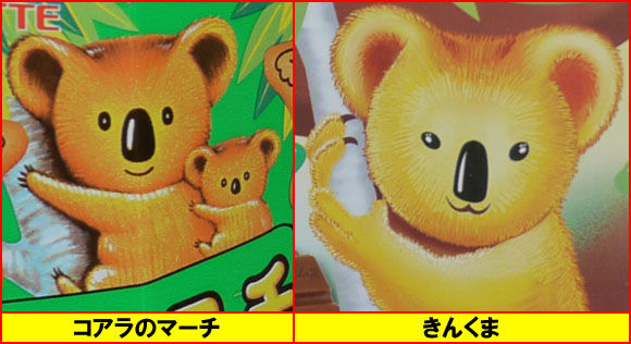 それにしても、ここまでソックリだと驚きを通り越して笑うしかない。この『ちいさい きんくま』を食べて育った子どもたちが将来『コアラのマーチ』を見て「これきんくまのパクリじゃね? 堂々とパクってね? ヤバくね?」と思っ