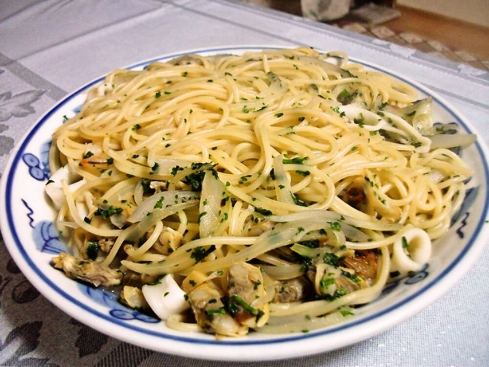 白ワインとトマトと魚介類のパスタのペスカトーレ大好き(*´∀`*)