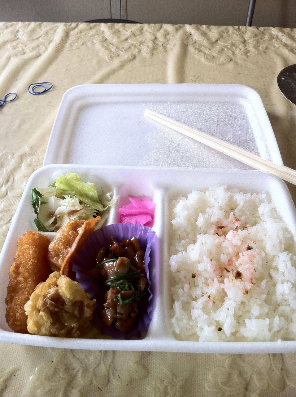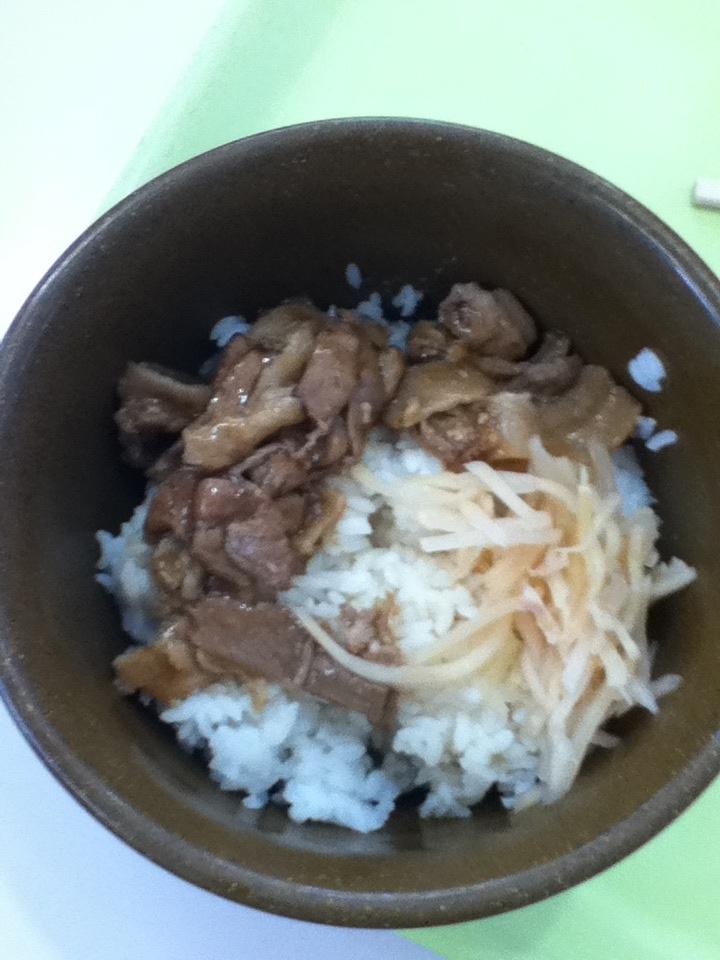 普通の白飯にレトルトのタレみたいなのをかけて、はいどうぞ!だった