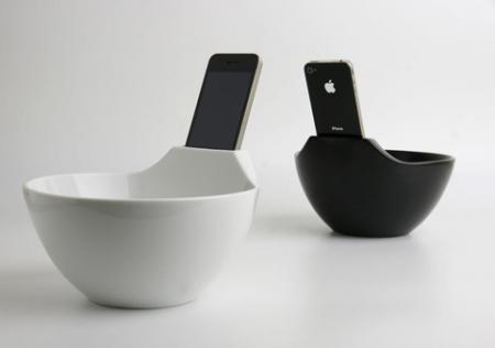 この製品は、iPhoneを固定するスタンドが付属したラーメンどんぶり。ラーメンを食べながらWEBを閲覧したりテレビ電話したり、好きな画像を表示したりできます。