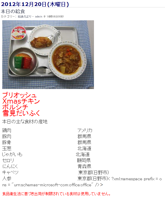 栄養についてはほとんど考えてない給食だな - 57: 以下、名無しにかわりましてVIPがお送りします 2013/04/06(土) 14:15:09.38 ID:Jc424C8s0