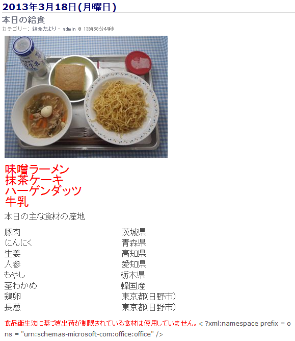 なんて栄養偏った給食なんだ… - 22: 以下、名無しにかわりましてVIPがお送りします 2013/04/06(土) 13:46:51.33 ID:tQRi+M6mO
