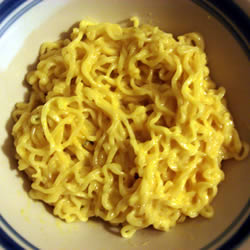 ユーザーがオリジナルのレシピを投稿できるallrecipes.comで見つけた、Emilyさんによるレシピは、米国人の子供に人気の料理「マック・アンド・チーズ」をラーメンで手軽に再現したようなお料理。「マック・アンド・チーズ」パスタ(マカロニ)をチーズソースで和えてオーブンで焼いたものですが、Emilyさんのレシピは、インスタントラーメンをゆでて湯きりし、そこに粉末スープととろけるチーズを混ぜる……というもの。「カレッジの寮でも、簡単に作れます」というのがセールスポイントらしいです。