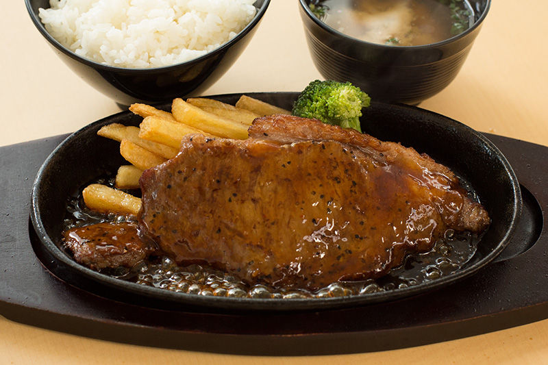 駒澤大学×銀座スエヒロ 牛肉120gのステーキランチが500円。