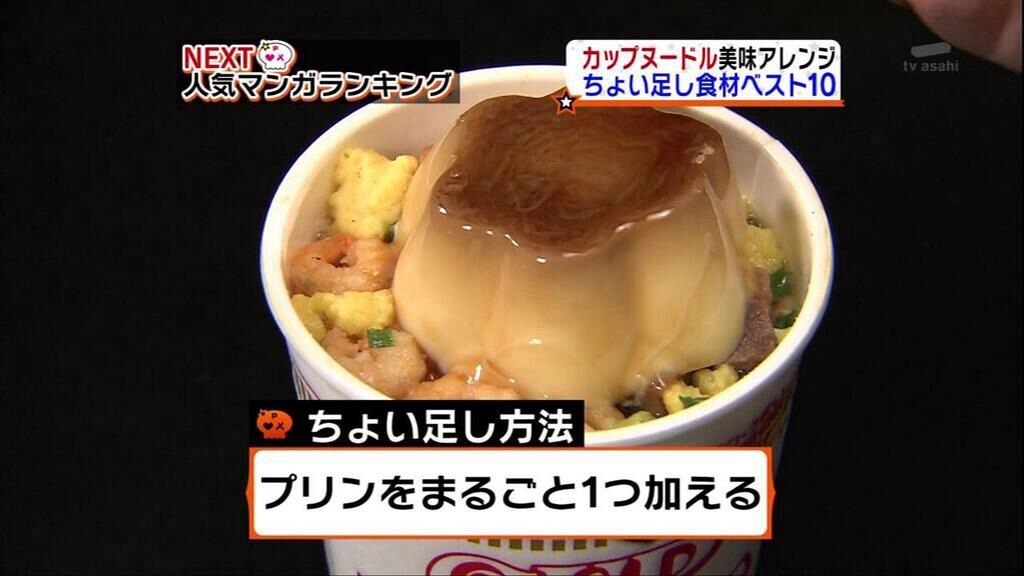 豚骨その他のインスタント麺にプリンを入れる食べ方が台湾で流行している。