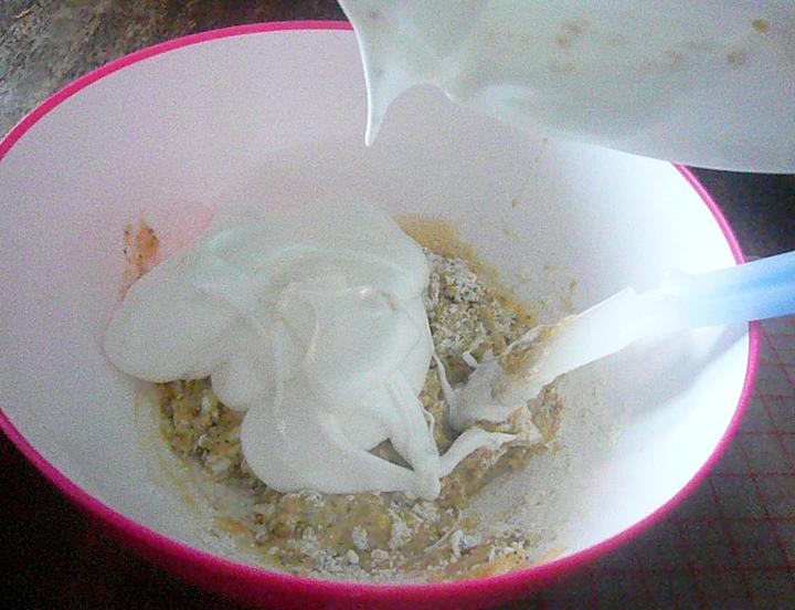 メレンゲ入れたら粟を潰さないように混ぜてね