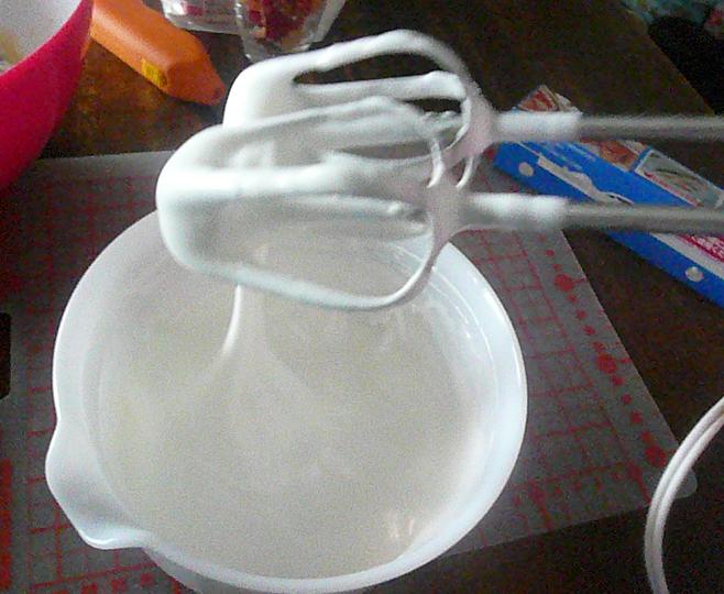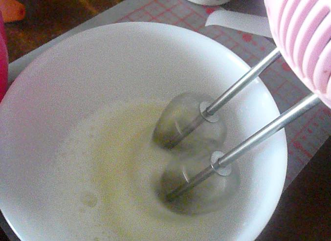 メレンゲを作るとき、空気をいっぱい入れるように混ぜるのがコツ