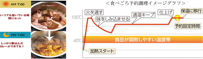 ・12時間後の予約調理のセットが可能(腐らない温度をその間維持してくれる)