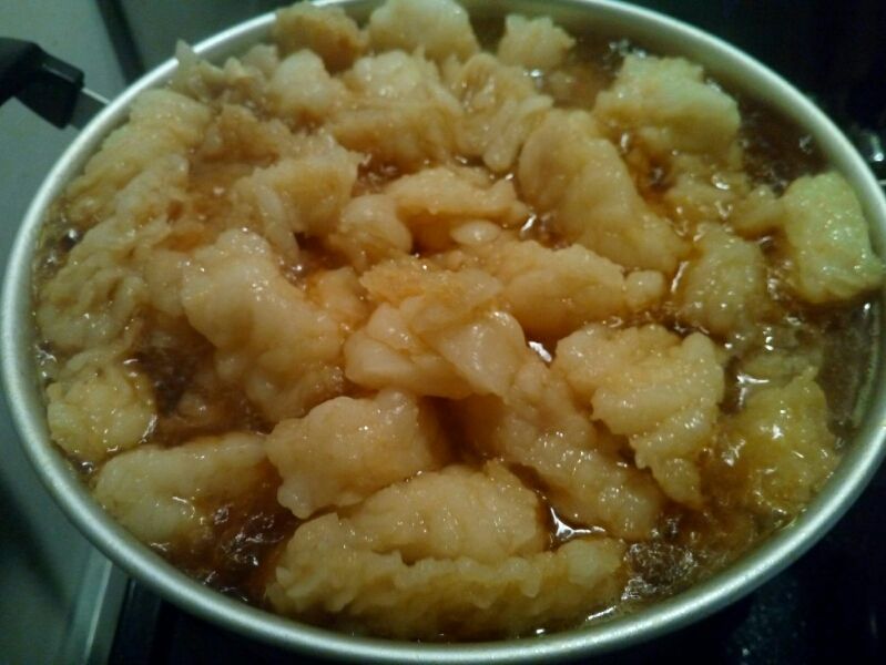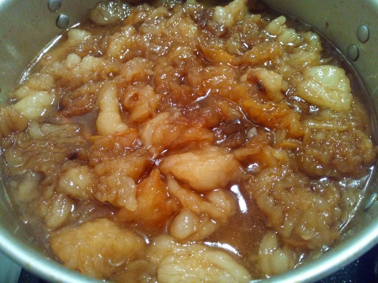 最初は脂が硬いからゴツゴツしてて鍋いっぱいになってたけど煮込むと柔らかくなって目減りして見えるだけ
