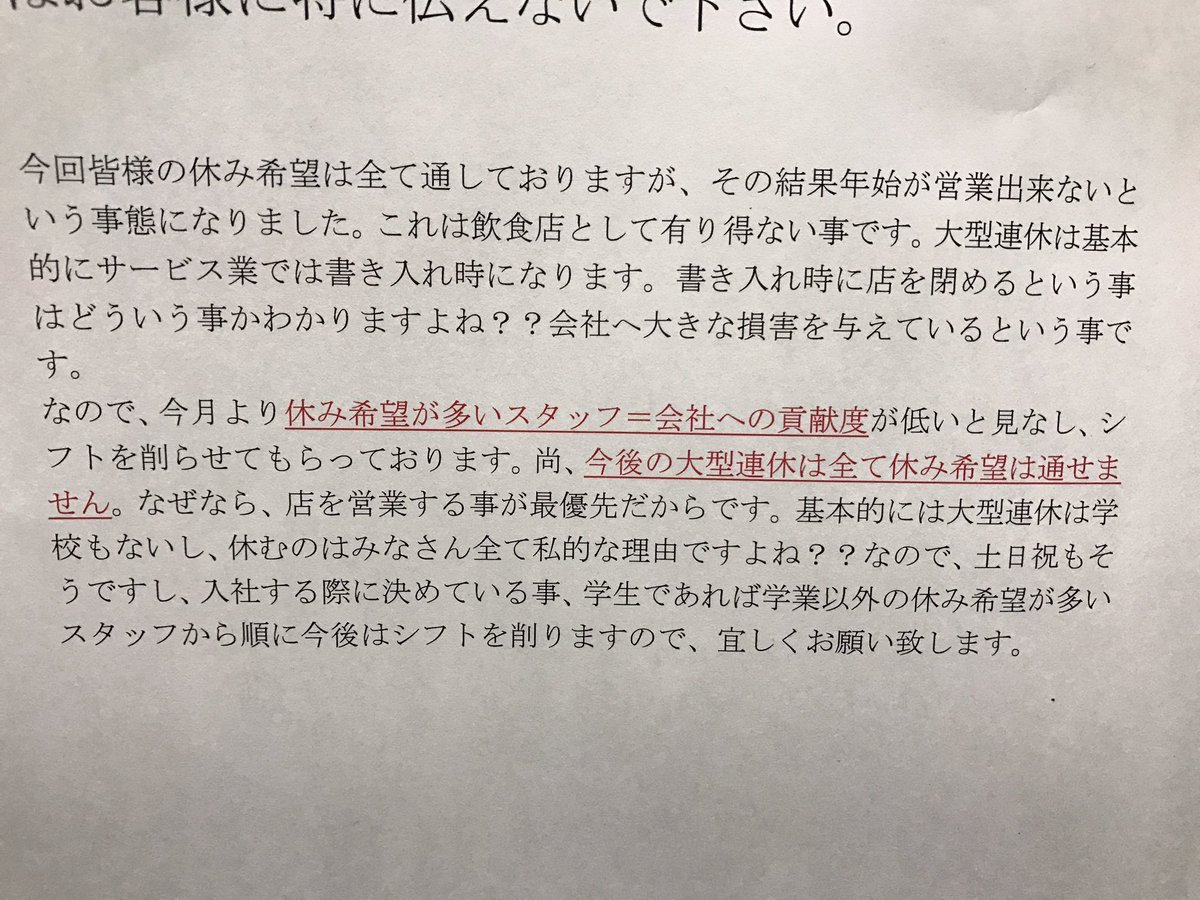 学生バイト相手に「学校も無い大型連休に私的な理由で休む人は貢献度が低い」とか意味わからん