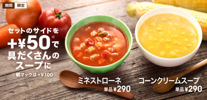 朝マックだとまだコーンポタージュとミネストローネあるんじゃないか?