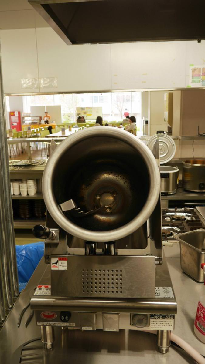 台北で見たな、コンクリートミキサーみたいな機械が回転してご飯を炒めてた