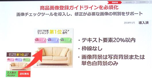 商品画像登録ガイドラインで、「テキスト要素20%以内」「枠線なし」「画像背景は写真背景または単色白背景のみ」を必須化する