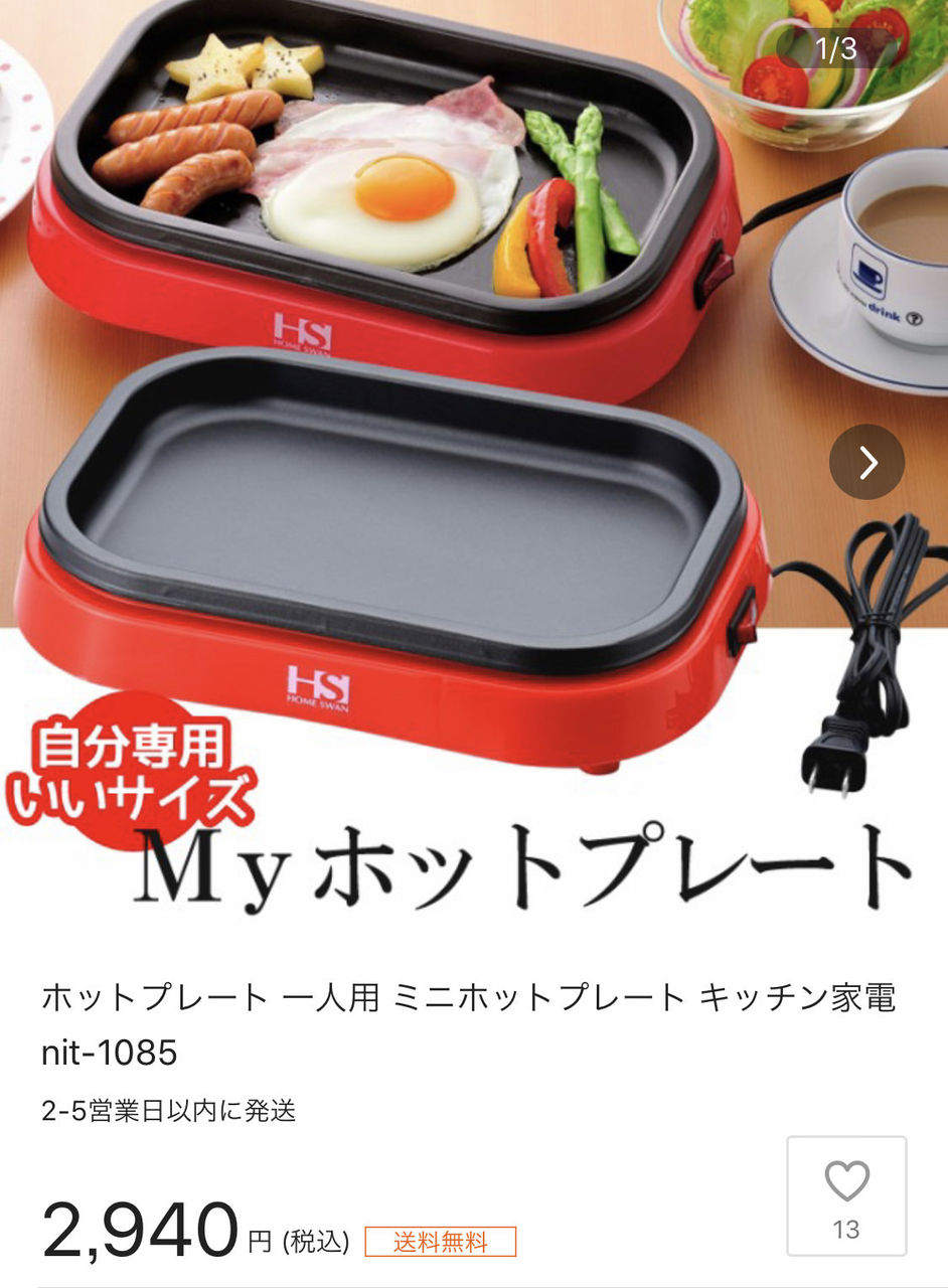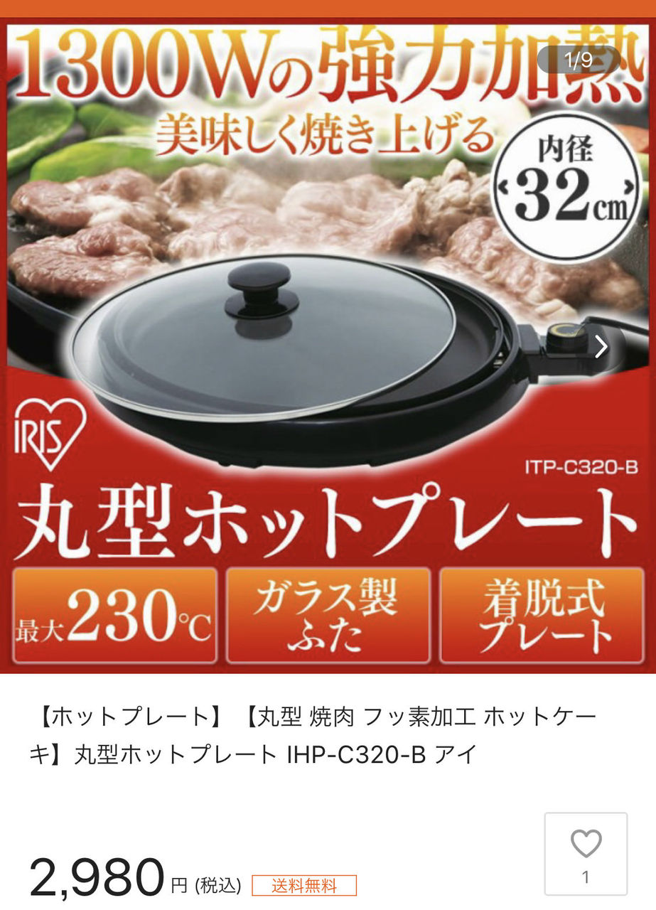 ただこの値段でこのサイズのホットプレートって一人焼肉用には便利そう